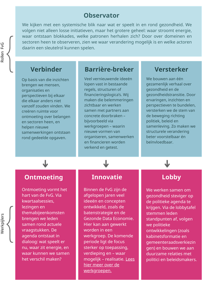 We gebruiken deze aanpak in bijeenkomsten om complexe vraagstukken in de gezondheidstransitie op een constructieve en duurzame manier te benaderen.